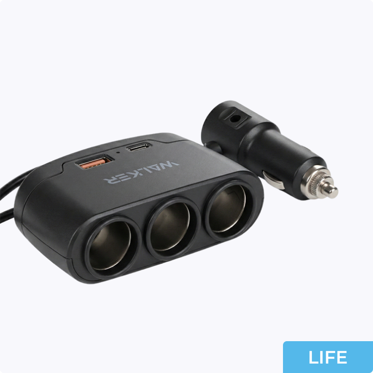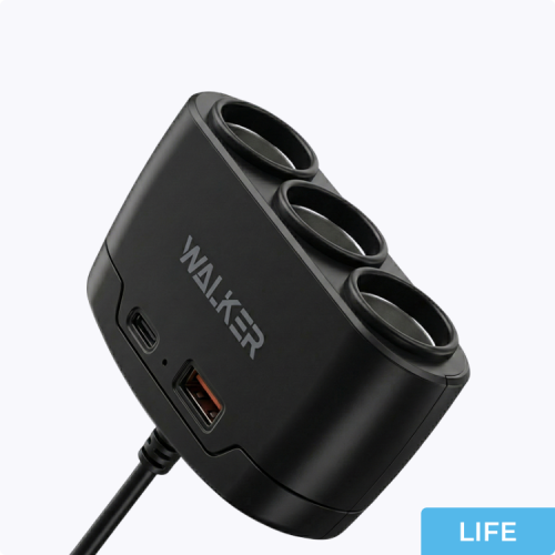 Разветвитель прикуривателя WALKER WSC-21, 80Вт, USB, Type-C, c индикатором