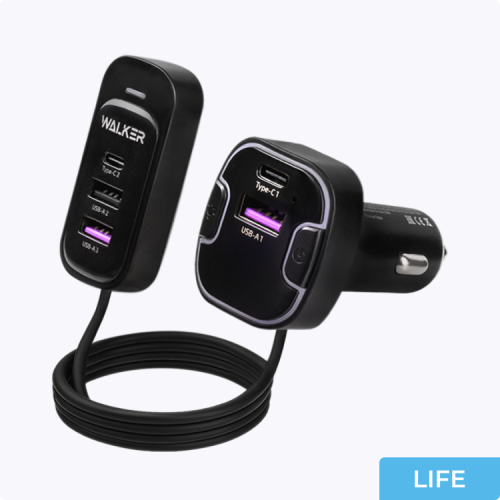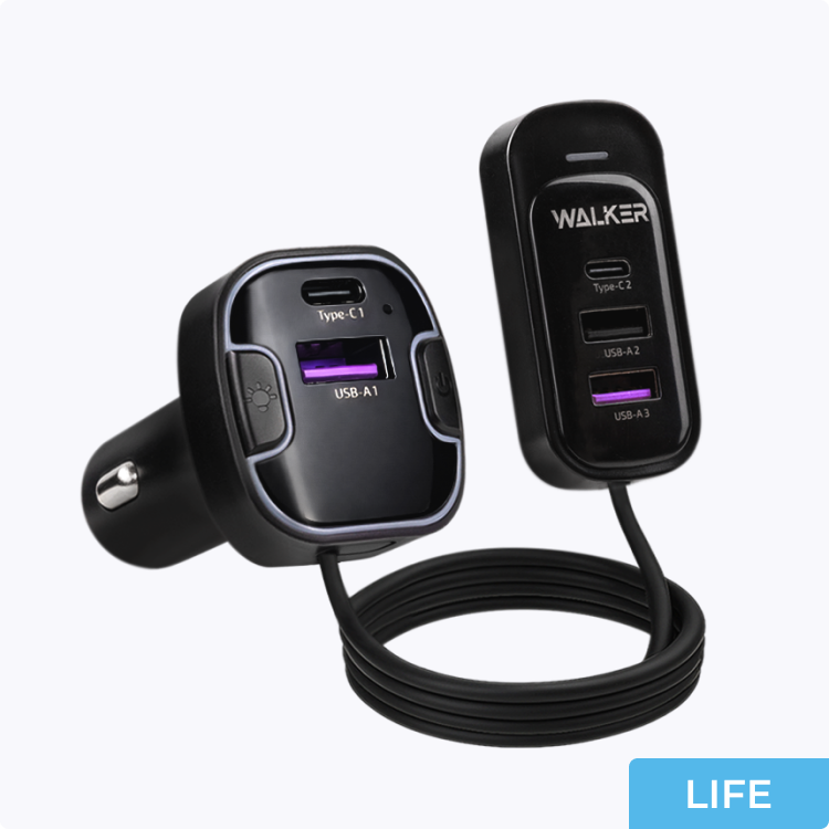 Автомобильное зарядное устройство WALKER WCR-75, с удлинителем, Type-C, USB