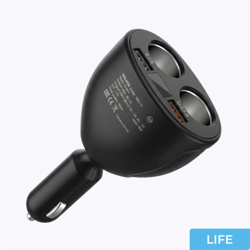 Разветвитель прикуривателя WALKER WSC-31, 100Вт, с дисплеем