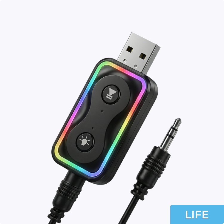 Универсальный адаптер с Bluetooth 5.3 для соединения любой техники. Работает в двух режимах, устраняя проблему совместимости устройств дома и в автомобиле.