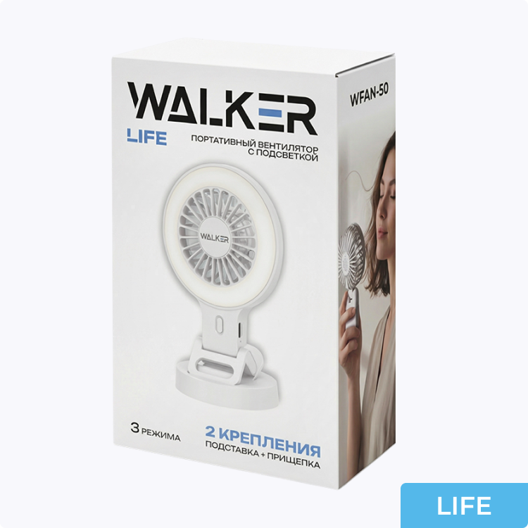 Вентилятор WALKER WFAN-50, с прищепкой и подсветкой