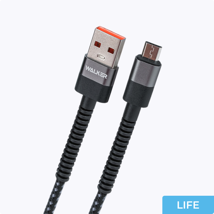 WALKER C535 Micro USB — прочная тканевая оплетка и металл