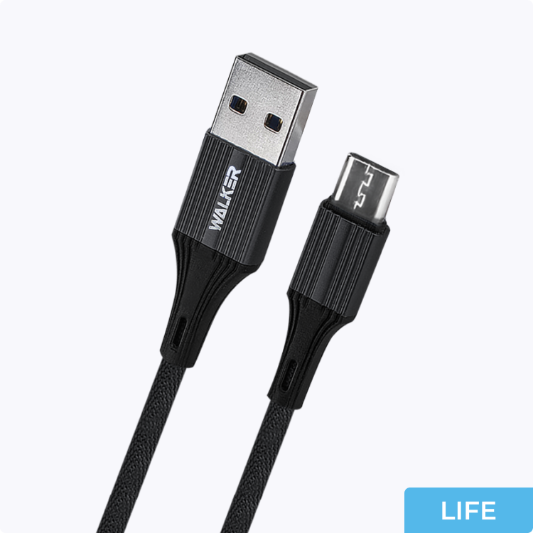 Кабель WALKER C705 Type-C, 45 Вт — прочность ткани и металла