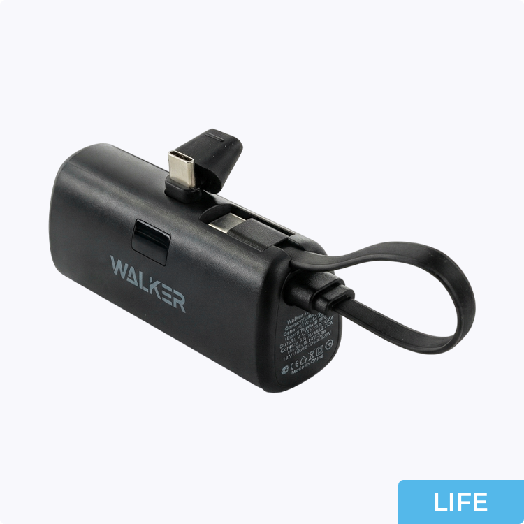 WALKER WB-965 расширяет возможности мини-повербанков. Помимо основного коннектора Type-C, он оснащен дополнительным встроенным кабелем, который также служит удобным ремешком для переноски.