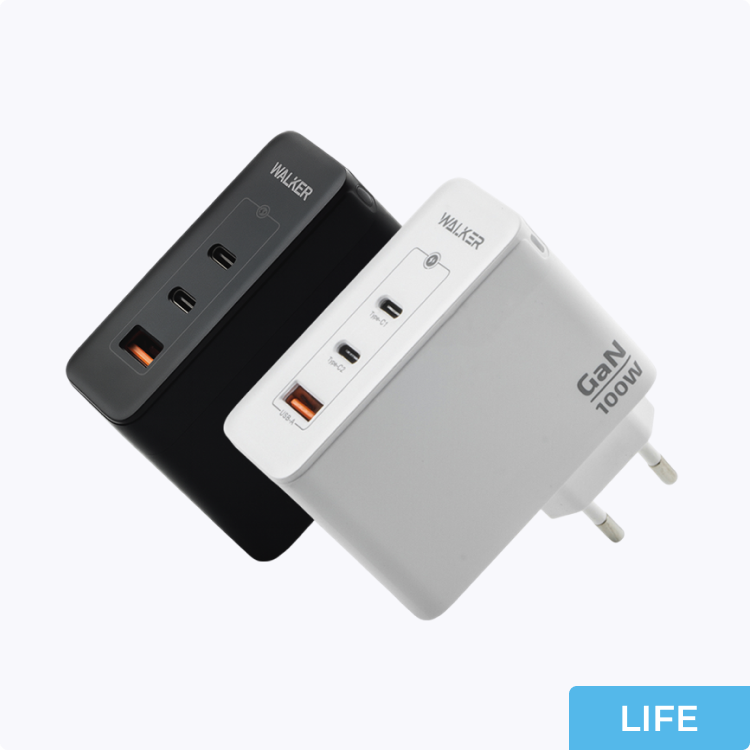 Самое мощное решение в линейке. WALKER WH-47 с технологией GaN выдает до 100 Вт общей мощности, что позволяет заряжать производительные ноутбуки и еще дополниельное устройство.